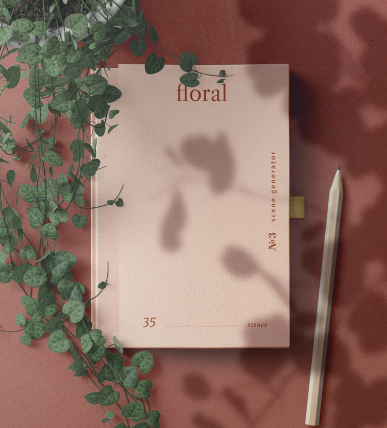 Book with pencil floral mockup scene to showcase your book cover design in a photorealistic look. PSD file consists of smart objects.