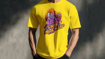 in ApparelsFree Man Wearing Short Sleeves T-Shirt Mockup PSD