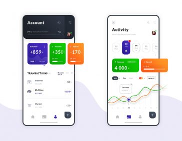 Bank Account, Activity IOS App Screen PSD Templates
