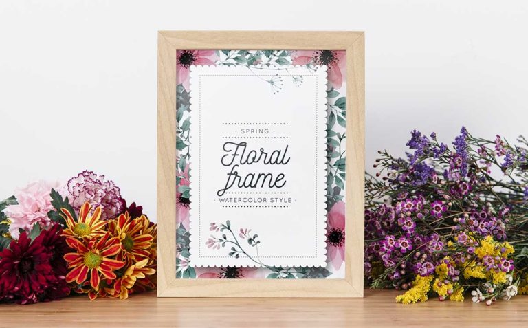 Mockup of Frame Between Beautiful Flowers Free PSD