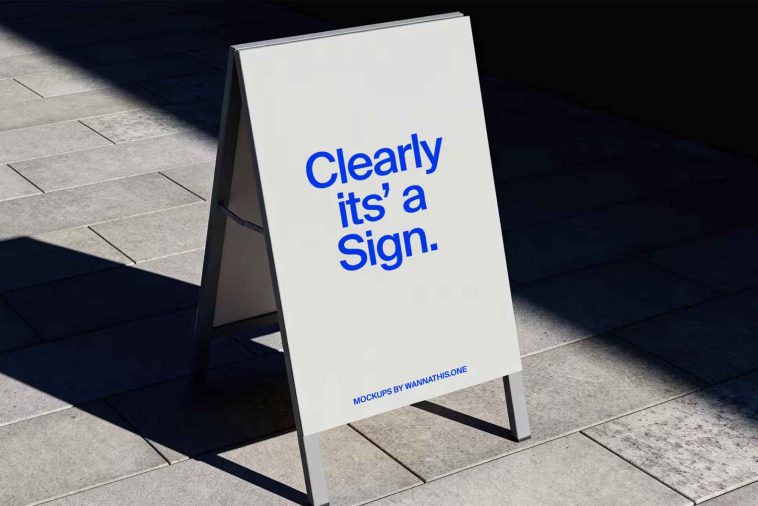 Free A-Frame Street Sign Mockup PSD – Outdoor Sidewalk Advertising Board Mockup Download