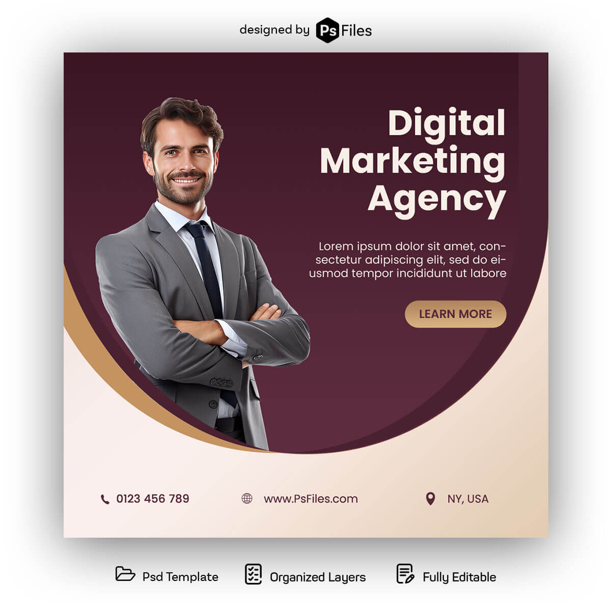Today, we are sharing a Free Digital Marketing Agency Instagram Post Design PSD Template to elevate your social media promotions. This trendy and modern Instagram post design is crafted in Adobe Photoshop and comes in a fully layered PSD file, allowing you to customize colors, text, and elements to match your brand theme effortlessly. Perfect for digital agencies, startups, and marketers looking to engage their audience with a professional look. Download now and make your social media stand out!