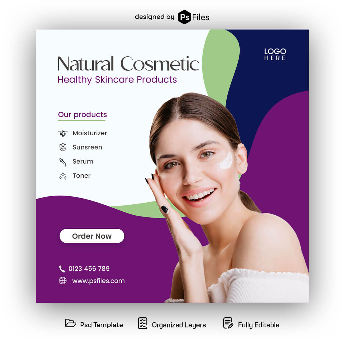 Today, we are sharing a Healthy Skin Care Product Free Social Media Post Design PSD Template, perfect for promoting your skincare brand on Instagram and beyond. This high-quality, fully layered PSD template is designed to captivate your audience with a clean, professional look that enhances your cosmetic product showcase. Easily customize text, colors, and branding elements using Adobe Photoshop. Download now and create stunning social media posts that highlight your skincare essentials with style and elegance. Boost your online presence today!