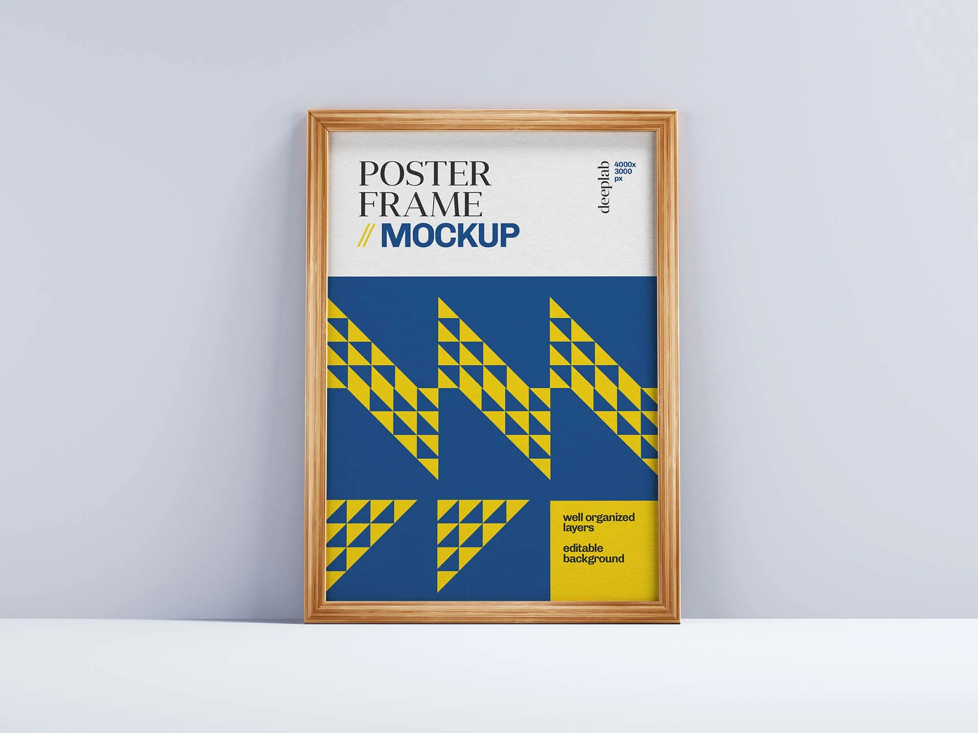 A free 3 realistic light wooden photo frame mockup PSD set. This free poster frame mockup is perfect for showcasing your designs of different sizes. One is 2 different sized frames in scene the sceond has a frame placed on on table. The third is landscape type on hanging type. Just download it and play with your branding style.