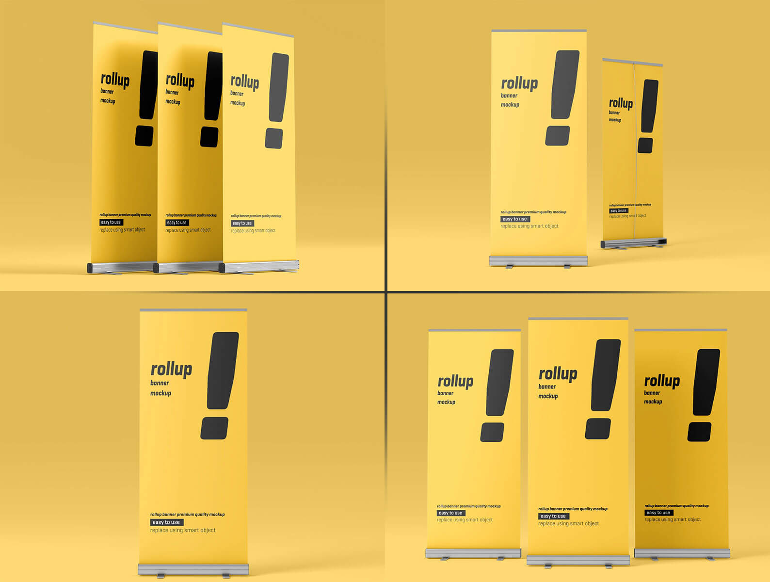 Today, we have to share a versatile set of Free Rollup Stand Banner Mockups in PSD format – a game-changer for your advertising and promotional projects. Featuring five different angles, this mockup set allows you to effortlessly showcase your designs on a rollup stand with realistic precision. Elevate your presentations, trade show displays, or marketing materials by easily placing your graphics using smart objects. Download this valuable resource today and revolutionize the way you present your brand, ensuring a professional and impactful visual representation.
